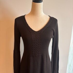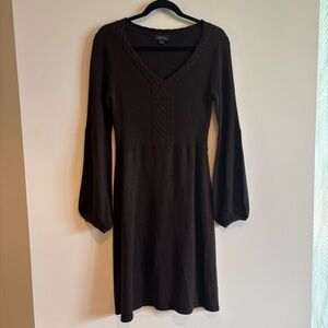 Tahari Arthur S. Levine Dark Brown Wool Blend Bell Sleeve Knit Sweater Dress S