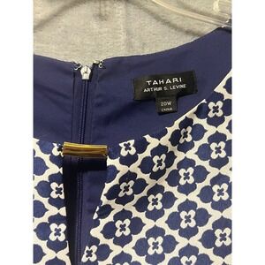 Tahari Arthur S. Levine Dress 20W Blue White Geometric Sleeveless Career