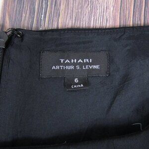 Tahari Arthur S. Levine Dress Womens 6 Black Sheath 3/4 Sleeve Belted Lined