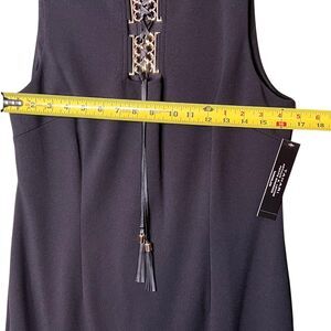 Tahari Arthur S. Levine Dress Womens Petite 10P Black Sheath Chain Tassel