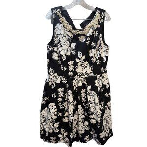 Tahari Arthur S. Levine Floral Black & White Sleeveless Dress Size 16