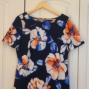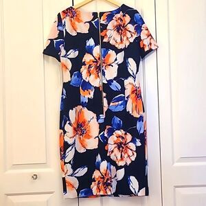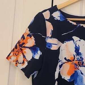 Tahari Arthur S. Levine Floral Dress 8299M701 Navy Peach Ivory Floral