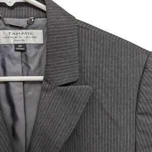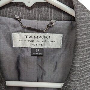 Tahari Arthur S. Levine Grey Pin Striped Blazer Jacket Single Breasted Size 8P