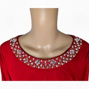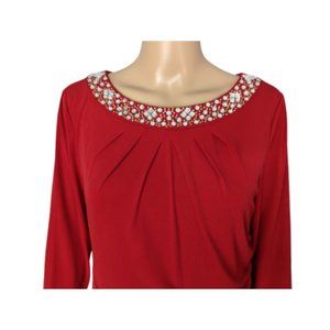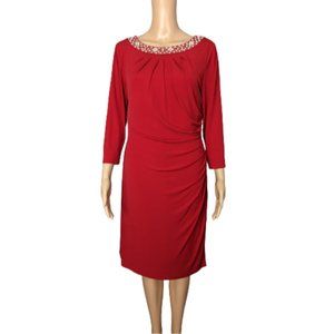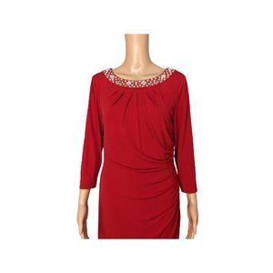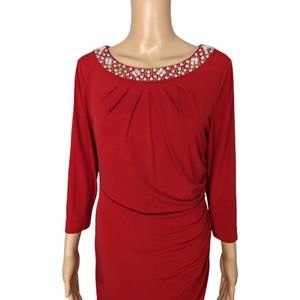 Tahari Arthur S Levine Jewel Embellished Ruched Red Dress