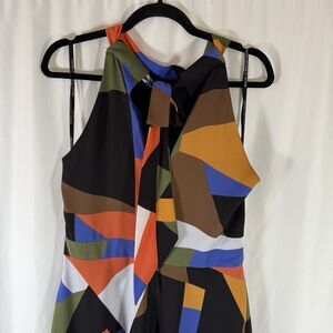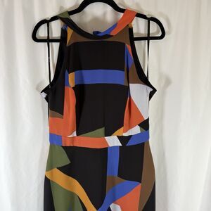 Tahari Arthur S Levine Maxi Dress Women's 8 Black Color Block High Neck Sleevlss