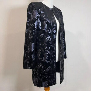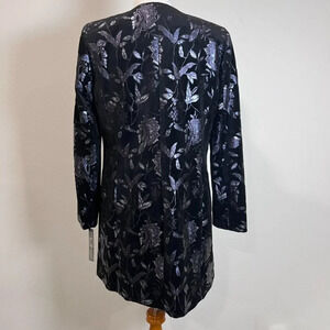 Tahari Arthur S. Levine Navy & Silver Floral Velvet Long Line Jacket 6 NWT