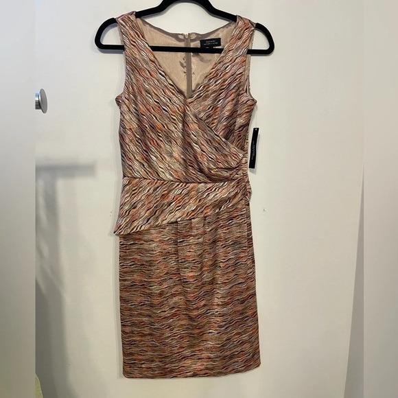 Tahari Arthur S Levine | Patterned Faux Wrap Pleat Sleeveless Sheath Dress 2