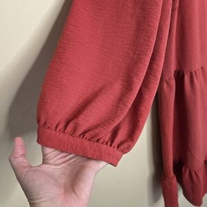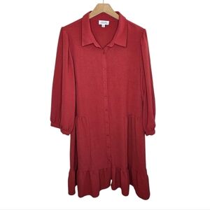 Tahari Arthur S. Levine | Red Button Front Drop Waist Collared Long Sleeve Dress