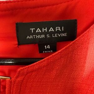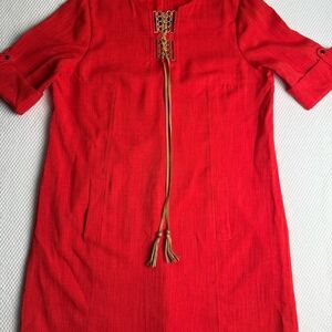 Tahari Arthur S. Levine Red Shift Dress Size 14 Gold & Tassel Detail