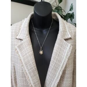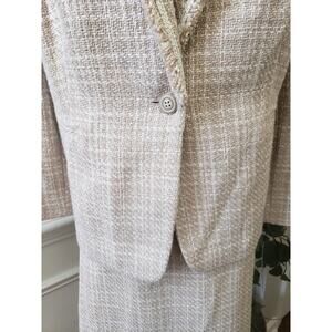 Tahari Arthur S. Levine Skirt Suit Set Womens 22W Beige Fringe Trim Notch Lapel