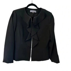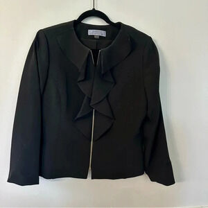 Tahari Arthur S. Levine Women's Black Ruffle Zip Up Blazer Jacket Size 12 GUC