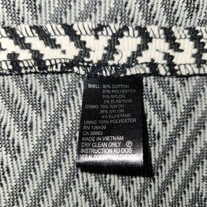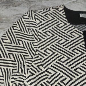 This Tahari Arthur S. Levine blazer features a striking black and white geometric pattern, offering a professional yet stylish look. Its blend of cotton and polyester ensures comfort and durability, making it suitable for various business settings.