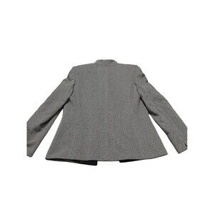 The Tahari Arthur S. Levine Women's Blazer Jacket is a versatile addition to any wardrobe. Size 10 and crafted from tweed wool, this basic jacket features a geometric pattern that exudes a classic sense of style. Ideal for business, casual, or workwear settings, it offers a regular fit with long sleeves and an open-front design for easy layering. This blazer boasts a hook and eye closure, with a polyester lining and insulation to keep you comfortable during the cooler seasons of fall, spring, and winter. When it's time for a touch-up, the dry-clean-only garment ensures your jacket looks its best. Vintage charm is woven throughout this piece, making it a timeless staple for your collection.