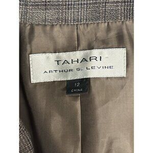Tahari Arthur S. Levine Womens Brown Plaid Blazer Size 12 Button Front Notch Lap