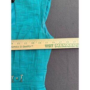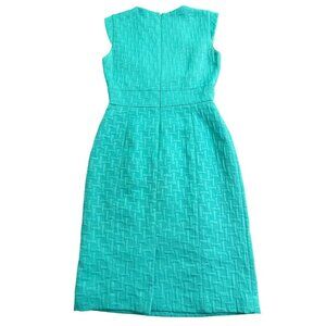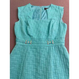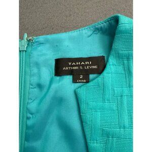 sheath dress, turquoise dress, women's formal dress, office wear, textured dress, size 2 dress, Tahari dress, sleeveless dress, woven fabric, elegant outfit, professional attire, workwear dress, fitted dress
