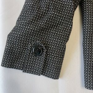 The woven black & white textured knit gives it visual depth and versatility. Fully lined for a clean interior and lined finish, it wears elegantly over your dresses, blouses, or tailored pants. The cropped / shorter silhouette gives it a sharp, poised feel — ideal for office wear, business casual looks, or special events.