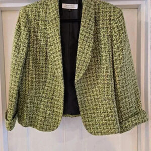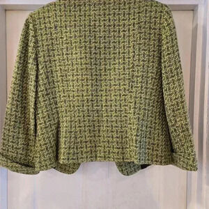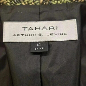 Tahari Arthur S. Levine Womens Tweed Open Blazer Green Size 14
