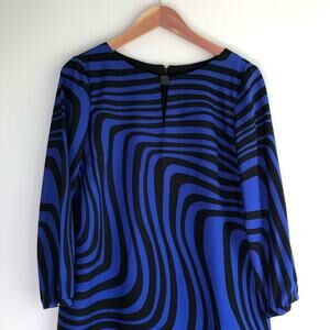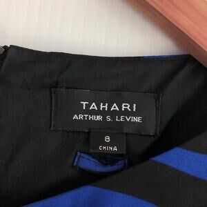 Tahari Arthur S. Levine cobalt and black wavy design shift dress keyhole size 8
