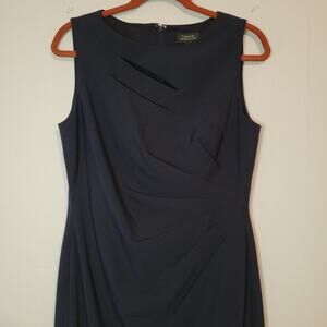 Tahari Arthur S. Levine sleeveless ruched sheath dress sz 10 navy office career