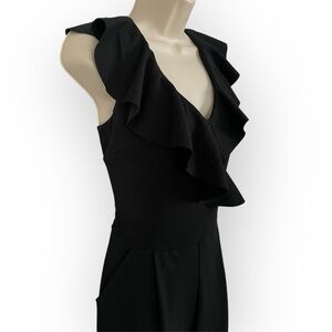 Tahari Arthur S Levine women’s v-neck ruffle sleeveless wide leg jumpsuit black