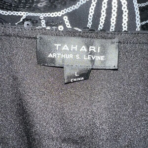 Tahari Arthur s Levine women’s black Silver sequin Quinn blouse sz LG NWT