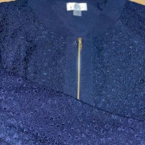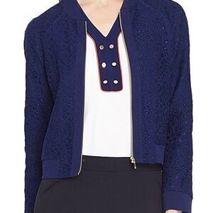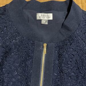 Tahari blue lace Bomber jacket size 18 gold zipper NWT