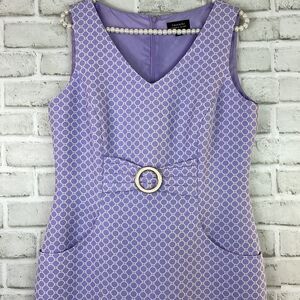 Tahari Arthur S Levine Purple Geo Print Dress Sleeveless Size 10 Mock Belt