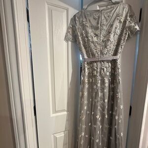 Size 4 maxi silver embroidered tulle dress perfect for special occasions