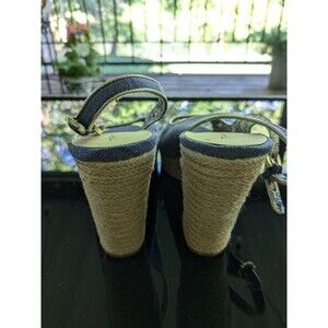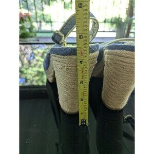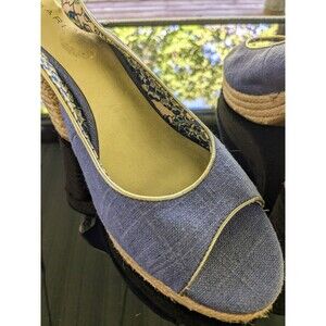 Tahari BARB Sandal Womens sz 9.5 Blue Canvas Slingback Platform Pump Heel Shoe