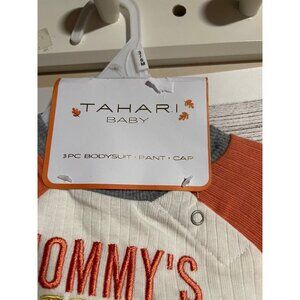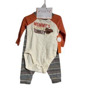 Tahari Baby 3-Piece Outfit Set 3-6M Mommys Little Turkey Bodysuit Pants Cap Fall