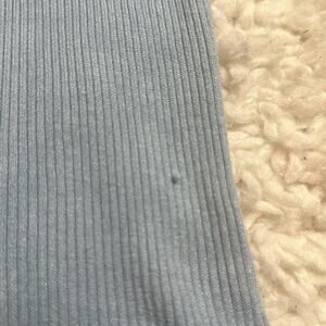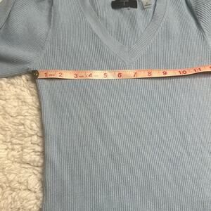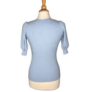 Tahari Baby Blue Ribbed V Neck Balloon Puff Sleeve Blouse Short Sleeve Top GG24