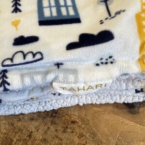 Tahari Baby Car Theme Blanket Security Lovey Plush White Blue Construction City