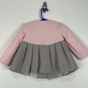 Excellent condition. Coat is two-toned pink and gray with double breasted buttons. Pleated. Size 12 months.