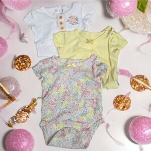 Tahari Baby Girl 3pc Yellow White Floral Onesie Bodysuit Playwear 6-9M Bundle