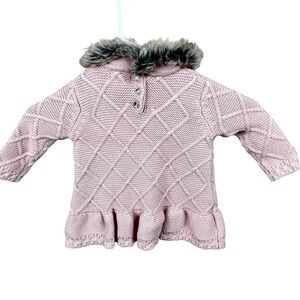Tahari Baby Pink Faux Fur Neck Trim Sweater Size 3-6 Months