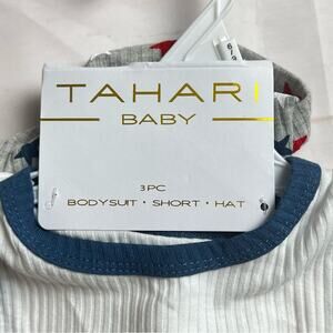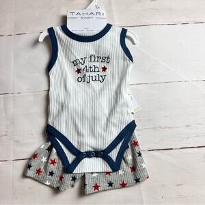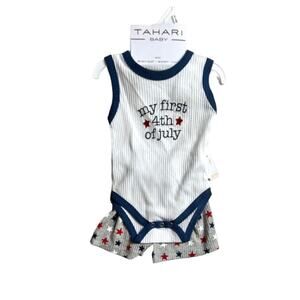 Tahari Baby Three Piece Hat Bodysuit Shorts Stars First July Fourth Matching Set