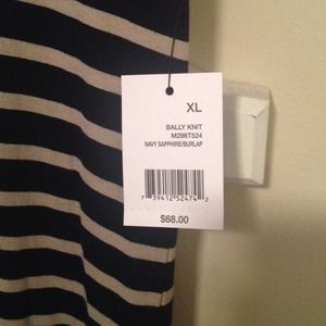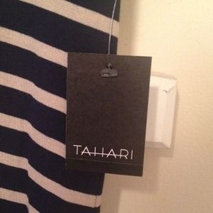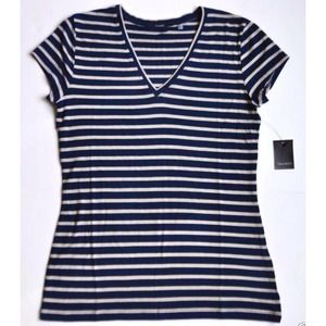 Adorable navy and cream striped v-neck knit top. Lots of stretch and so comfortable. This is a wardrobe staple! This is by Tahari and is very good quality. New with tags! This could fit a large or x-large.