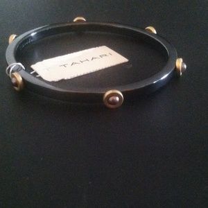 Tahari bangle bracelet, this bracelet is pewter color with gold circle designs. This is a really cute and fashionable item.