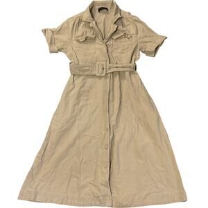 Tahari Belted Midi Tan Linen Blend Shirt Dress Adult Small