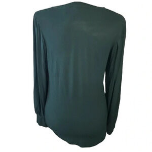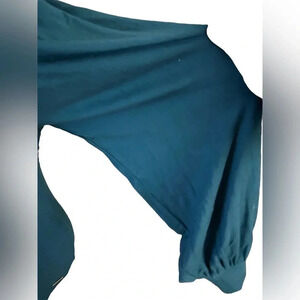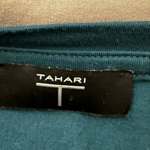 Tahari Bishop Stretch Knit crewneck Teal Blouse Size Small Boho Festive Light