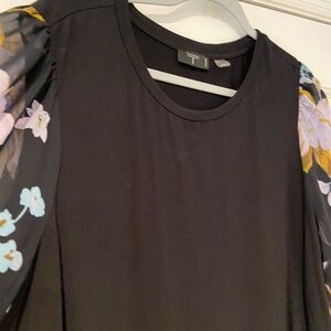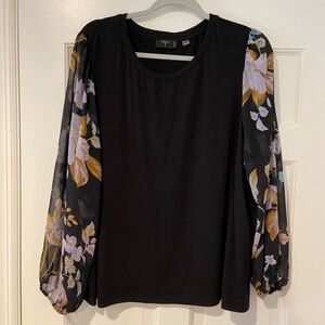 Tahari Black Blouse with Floral Chiffon Sleeves – Size 1X