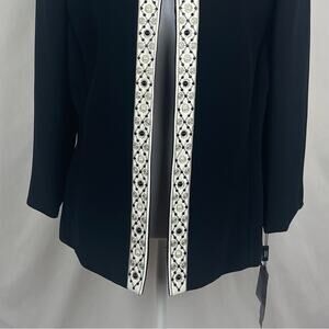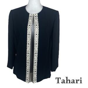 Tahari Black Cream Beaded Party Event Long Jacket Coat NWT Size 14