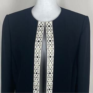 Tahari Black Cream Beaded Party Event Long Jacket Coat NWT