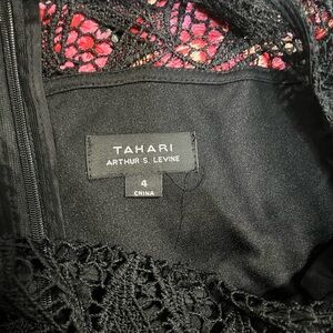 Tahari Black Crochet Lace w/Rose Applique Embroidered Shift Dress 4 Retail$158