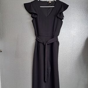 Tahari Black Cropped Jumpsuit With Flutter Sleeves