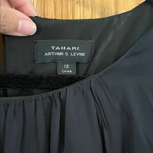 Chic black dress. Short sleeves with a stylish patterned skirt. Perfect for versatile wear.