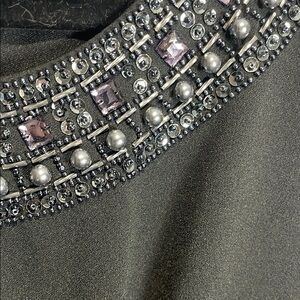 Tahari Black Embellished Ruched Mini Dress