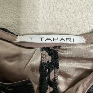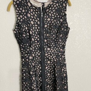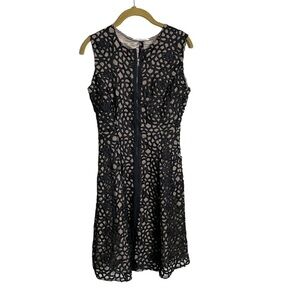 Tahari Black Eyelet Nude Underlay Zip Front Dress 2