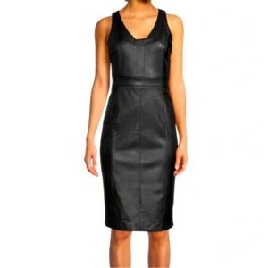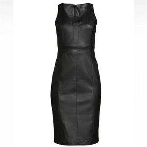 Tahari Sleeveless Black Faux Leather Sheath Dress