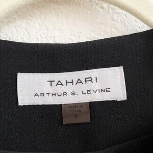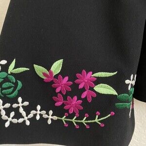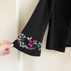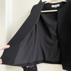 Tahari Size 6 Black Floral Embroidery Open Front Womens Fully Lined Jacket.